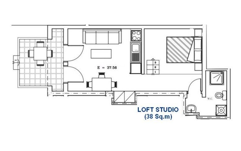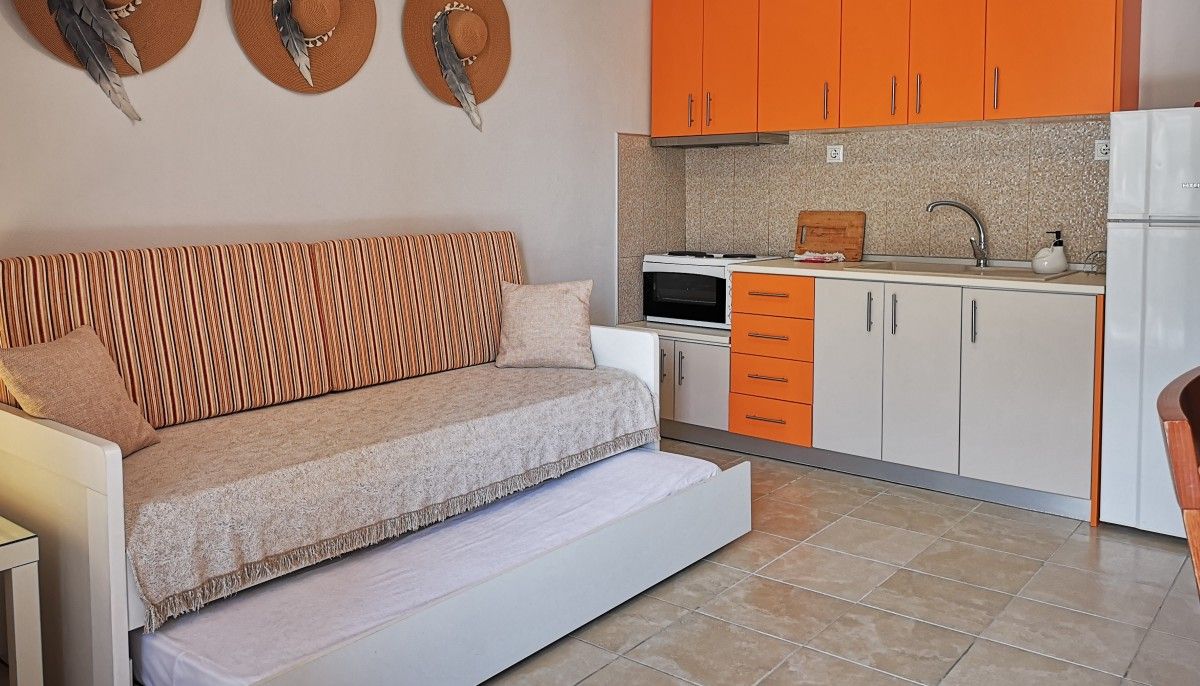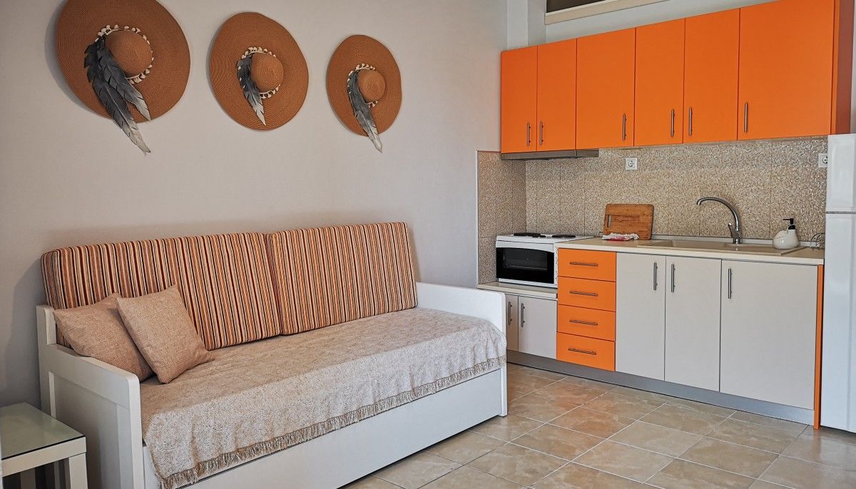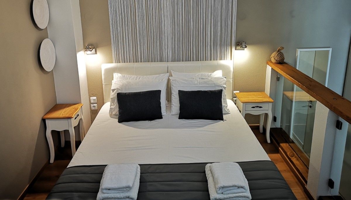“Loft” is a 38 sq.m. studio - apartment, tastefully decorated, with a king size double bed on a loft area and an air conditioned living room with a sofabed that can accommodate 1-2 more people.