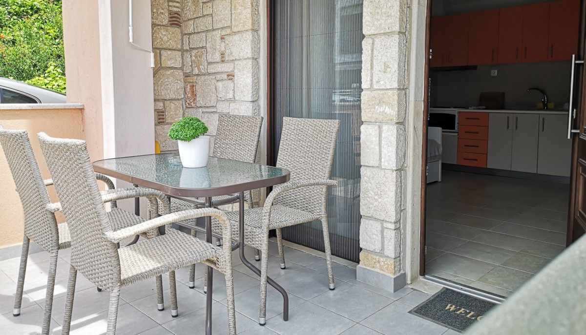 "Loft" studio - apartment is positioned in the ground floor, by the yard of a luxurius villa in the center of Nikiti, Halkidiki. It is situated 400m from the town's marina, while the post office, a pharmacy, super markets and Nikiti's main road are only a short distance away.