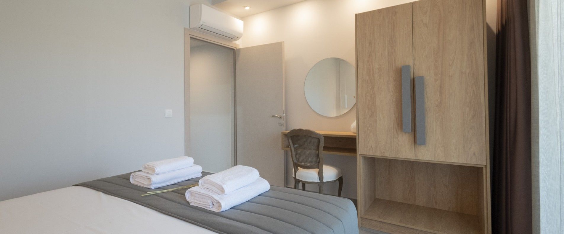 “ΑΜΜΟΣ" (SAND) is a deluxe 5 people, 50 sq.m. suite, tastefully decorated, containing a cozy, air-conditioned bedroom with a King Size, tailor made bed with anatomic mattress and a spacious, air conditioned, living room that can accommodate 2 or 3 more people.